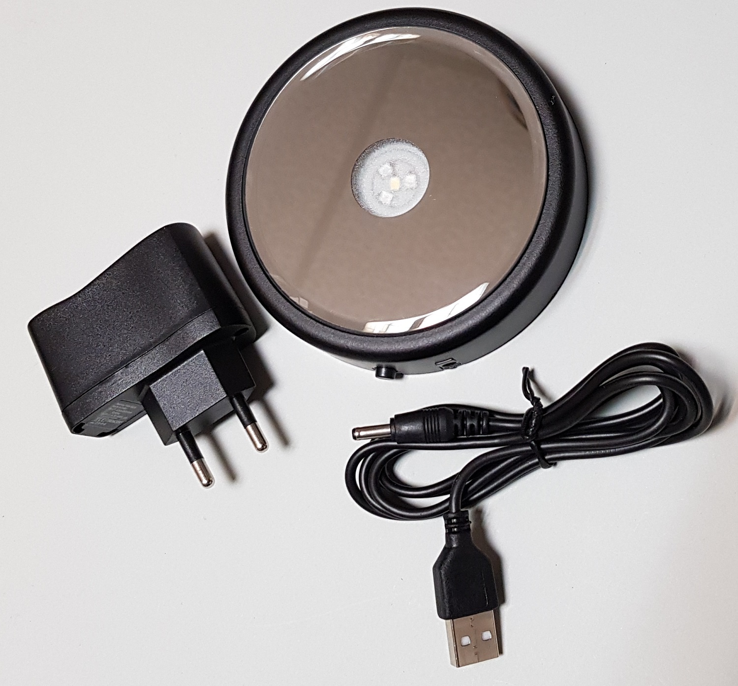 Der LED Sockel kann mit Batterien betrieben werden oder an die Steckdose angeschossen werden.